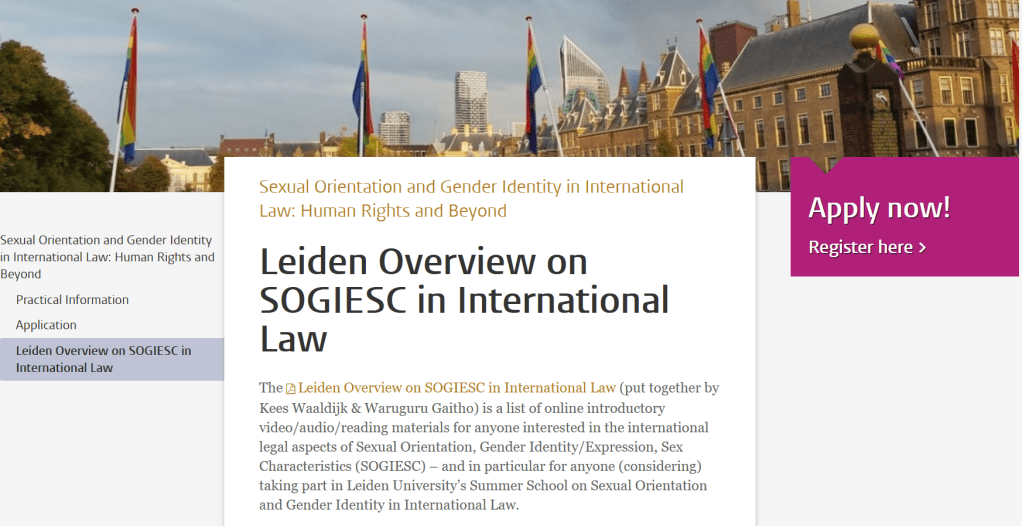 More information and online application form at https://www.universiteitleiden.nl/en/education/study-programmes/summer-schools/sexual-orientation-and-gender-identity-in-international-law-human-rights-and-beyond.