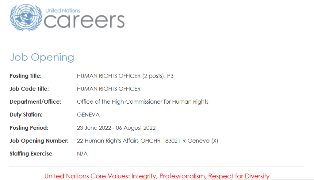 Pingback: UN OHCHR hires for two Human Rights Officer positions | International Law Association – Swiss Branch (since 1929) – President: Professor Andreas R Ziegler