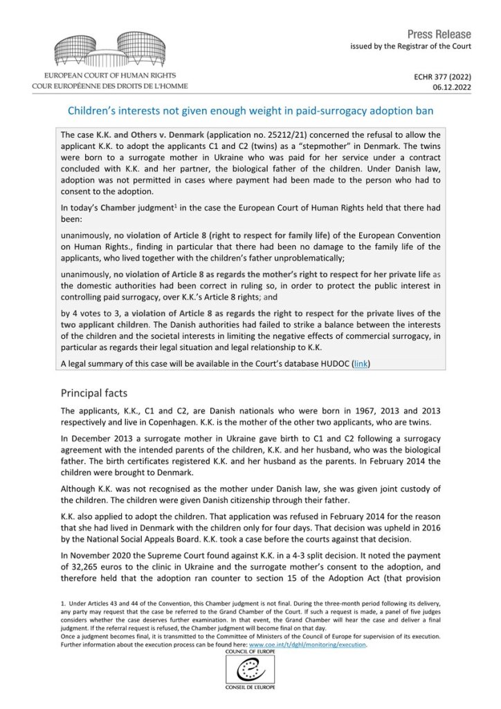 ECtHR: Children’s interests not given enough weight in paid-surrogacy adoption ban by Denmark