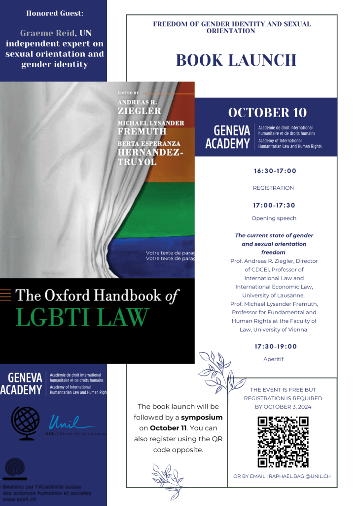 Join us in Geneva to celebrate the launch of the Oxford Handbook on LGBTI Law (10 and/or 11 October 2024)
